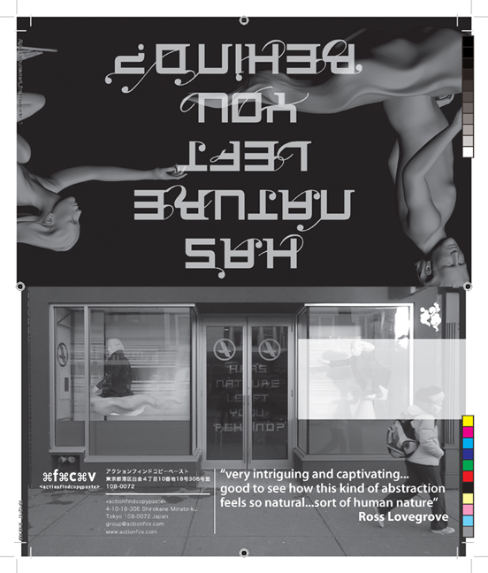 Ancillary work // Encapsulating an event, product, organization or company in image, text, form and material is critical to fixing, in the mind of a target audience, a particular ethos. From posters and mailers, to a variety of other printed material, all work undertaken by <actionfindcopypaste> is accompanied by a durable visual record made available to the general public.